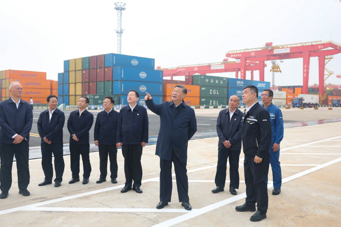 22日下午,习近平总书记在山东省日照市考察调研。他先后来到日照港和阳光海岸绿道,了解当地推进港口智慧化绿色化建设、扩大对外开放和加强海岸线生态保护修复、提高人民生活品质等情况。(文字记者:张晓松、朱基钗;摄影记者:鞠鹏、谢环驰、李涛、殷博古)