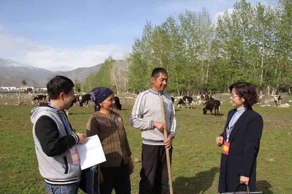 图为新疆维吾尔自治区阿勒泰市纪检监察干部在拉斯特乡诺改特村向牧民了解草原补助发放情况。孟照鹏 摄