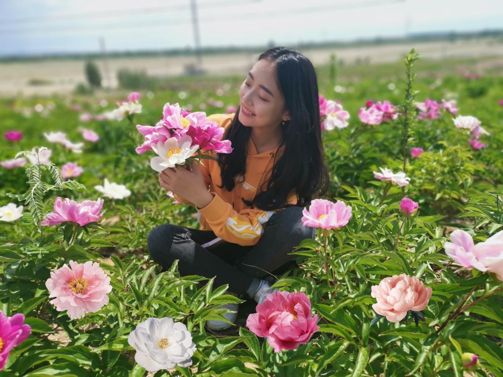 介格得布拉格村百亩芍药地里,